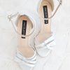 Millene – Sandale mireasa, argintiu cu perle /pietricele si platforma